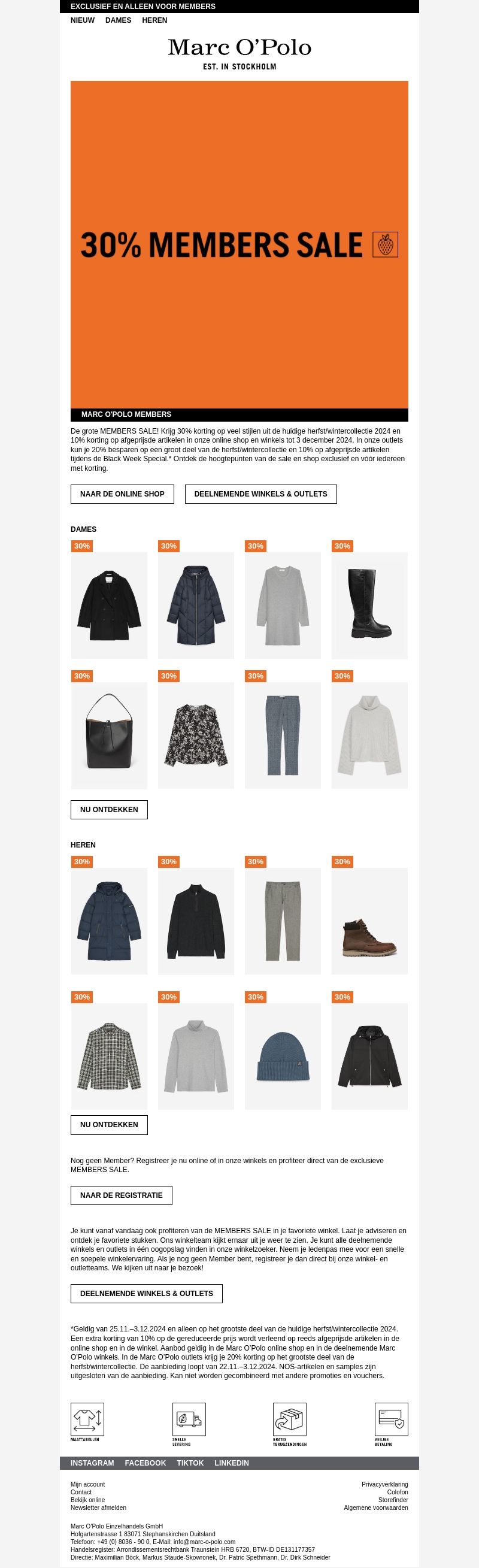 De MEMBERS SALE is nu live! Exclusief voor Marc O'Polo members, met kortingen tot 30% op de nieuwste herfst/wintercollectie. Geniet van extra voordelen in de online shop en geselecteerde winkels. Nog geen lid? Meld je aan en profiteer direct van deze geweldige aanbiedingen. De actie loopt van 25 november tot en met 3 december 2024. Laat deze kans niet voorbijgaan en vernieuw je garderobe met stijlvolle stukken!
