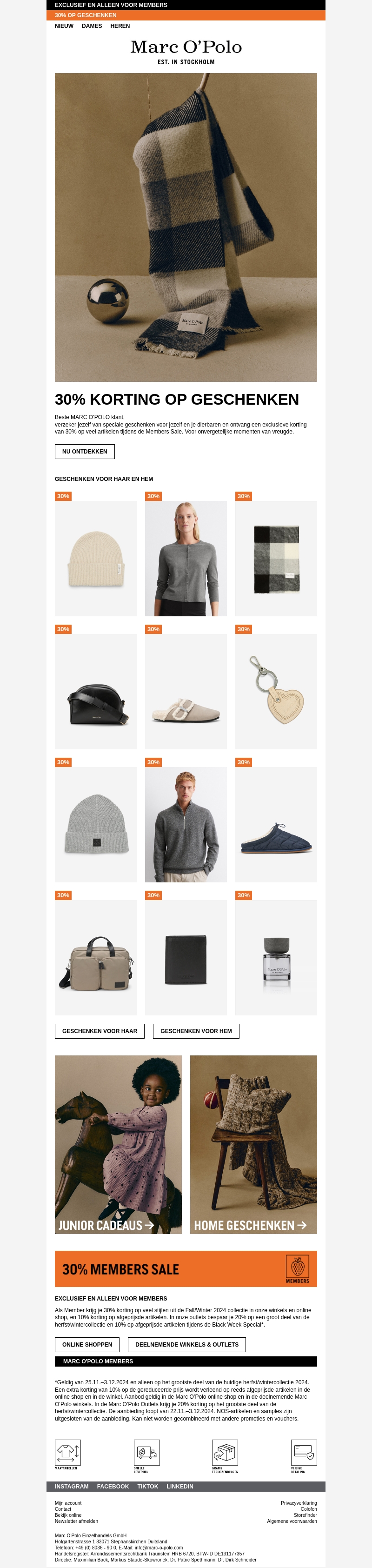 Profiteer van een exclusieve 30% korting op geschenken voor haar en hem bij Marc O'Polo. Deze aanbieding geldt alleen voor leden en omvat een breed scala aan stijlvolle artikelen uit de herfst/winter 2024 collectie. Mis deze kans niet om je garderobe uit te breiden met trendy en comfortabele items. Het aanbod is beperkt, dus ontdek nu de beschikbare producten. Geniet van deze voordelen tijdens de Members Sale.