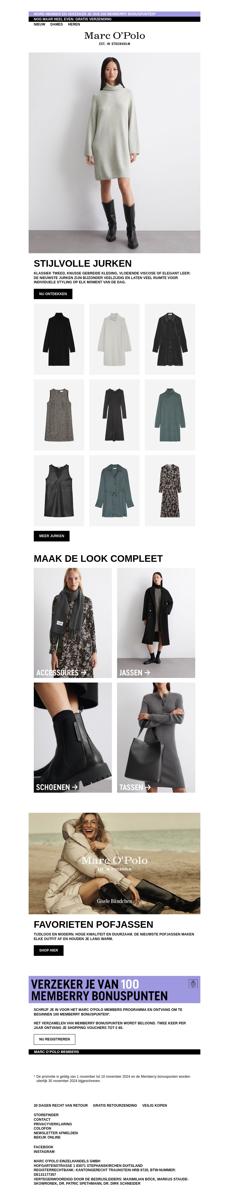 Verwen jezelf met de nieuwste collectie jurken van Marc O'Polo. Onze jurken zijn tijdloos en elegant, perfect voor elke gelegenheid. Bestel nu zonder verzendkosten. Ontdek ook accessoires en outwear om je look compleet te maken.