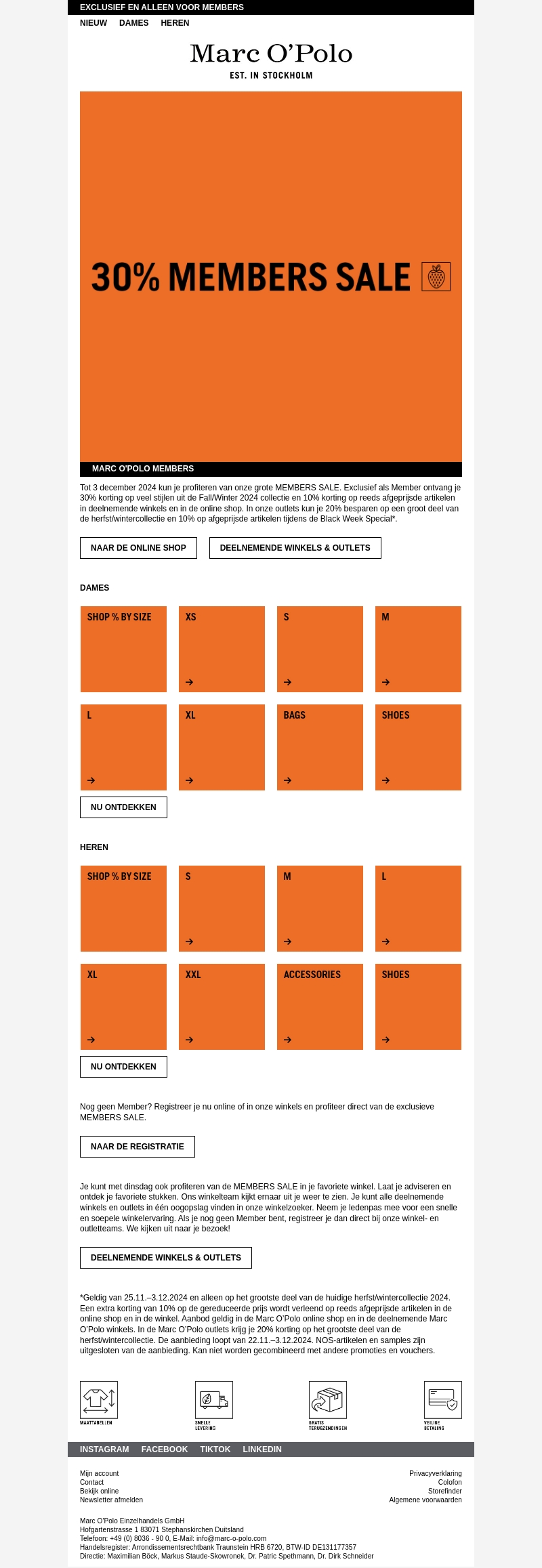 Ontdek de grote MEMBERS SALE bij Marc O'Polo met 30% korting op vele stijlen uit de Fall/Winter 2024 collectie. Alleen voor leden, inclusief extra kortingen in deelnemende winkels en de online shop. Registreer nu en ontvang direct toegang tot deze exclusieve aanbiedingen.
