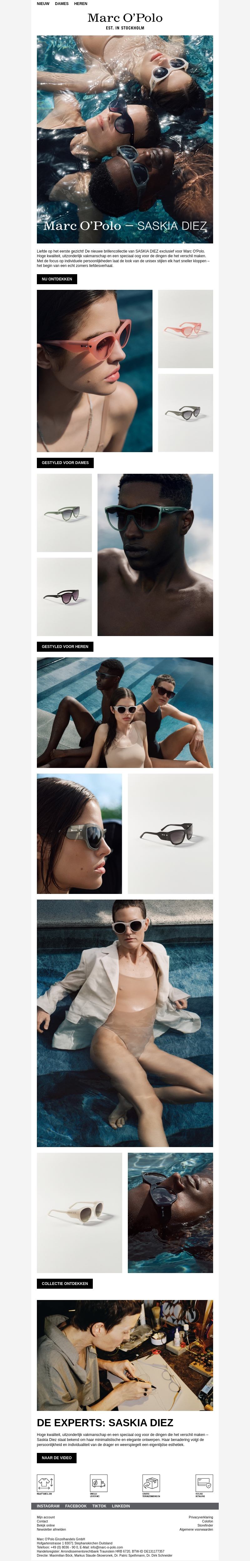 Vier de zomer met de exclusieve zonnebrillencollectie van Marc O'Polo en Saskia Diez. Deze samenwerking combineert mode en functionaliteit met elegante ontwerpen. Ontdek stijlvolle keuzes voor zowel dames als heren, ideaal voor een zonnige dag bij het zwembad. Ga voor een chique look met hoogwaardige materialen en perfecte pasvorm. Bezoek nu onze website en mis de nieuwste modellen niet!