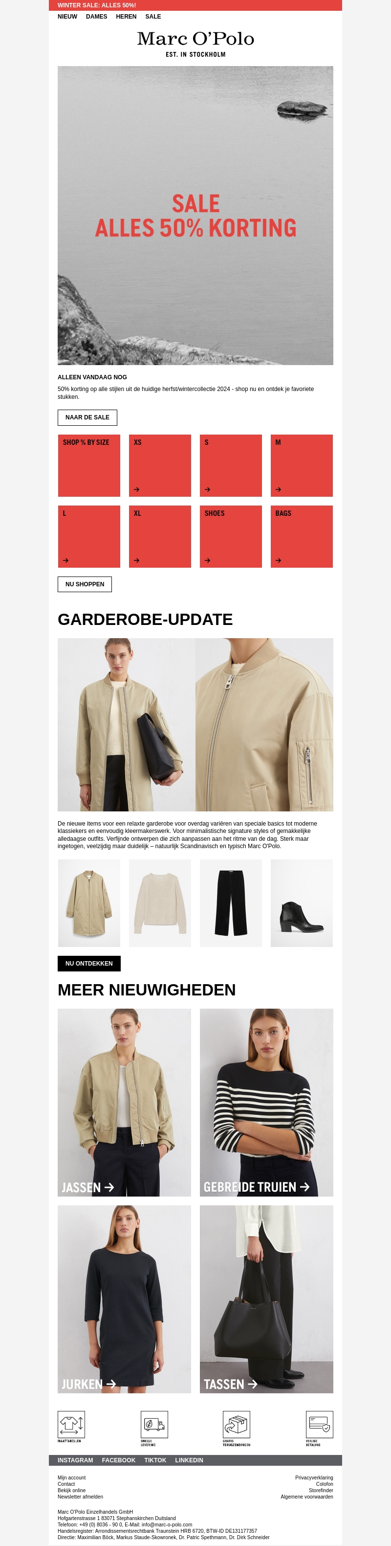 Mis deze laatste kans niet! Profiteer van 50% korting op de volledige herfst/wintercollectie van 2024. Ontdek moderne klassiekers en comfortabele basics die passen bij elke gelegenheid. Bekijk nu onze selectie van jassen, gebreide truien, jurken en tassen. Deze exclusieve aanbiedingen zijn alleen vandaag beschikbaar. Start direct met shoppen!