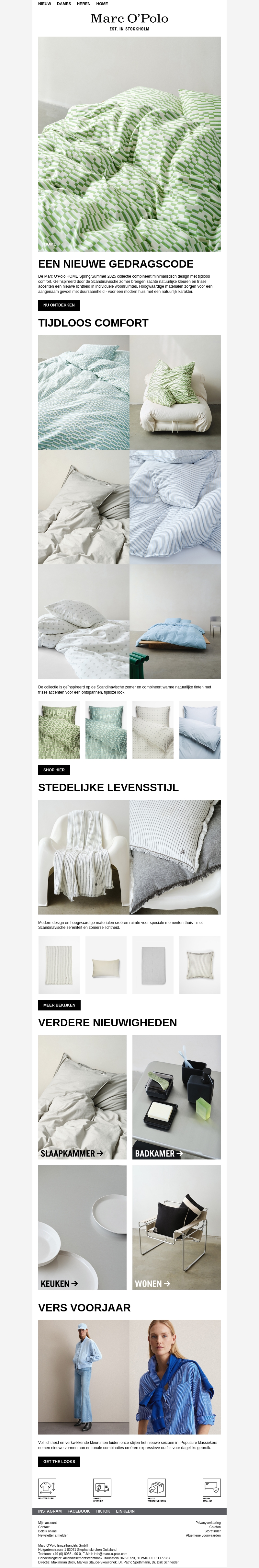 Marc O'Polo presenteert een nieuwe collectie modern woningtextiel. Ontdek het tijdloze comfort van ons beddengoed en de stedelijke levensstijl items. Verander je slaap- en badkamer met hoogwaardige materialen en stijlvolle ontwerpen. Verras jezelf met onze lente collectie, perfect voor een frisse start.
