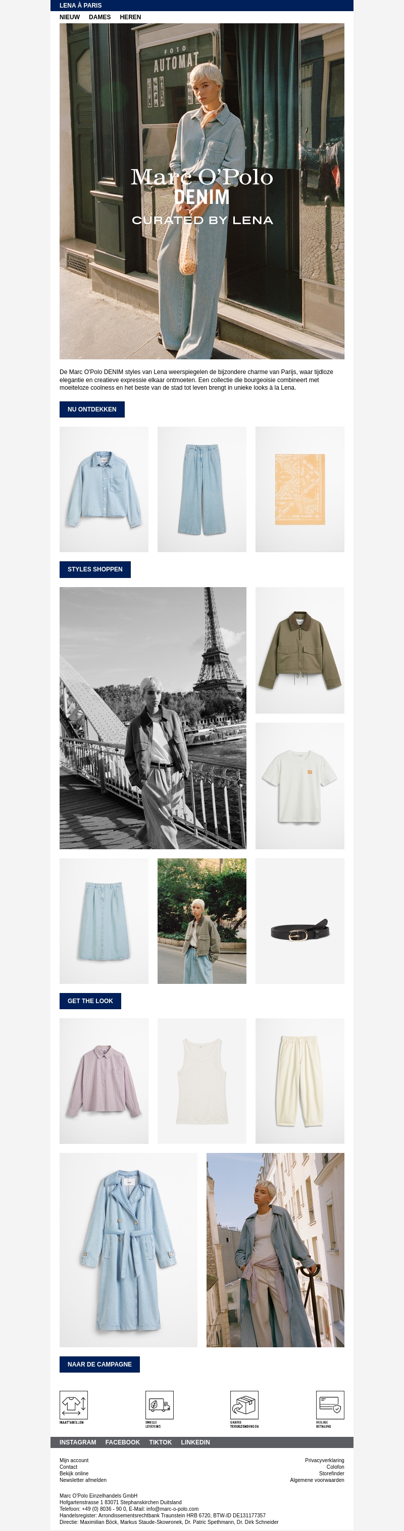Ervaar de nieuwe Marc O’Polo DENIM collectie, met een unieke charme die elegantie en creativiteit combineert. LENA brengt een stijlvolle Parijse sfeer tot leven met moderne, moeiteloze looks. Van fijne denim stukken tot modieuze accessoires, ontdek de veelzijdige stijlen vandaag nog.
