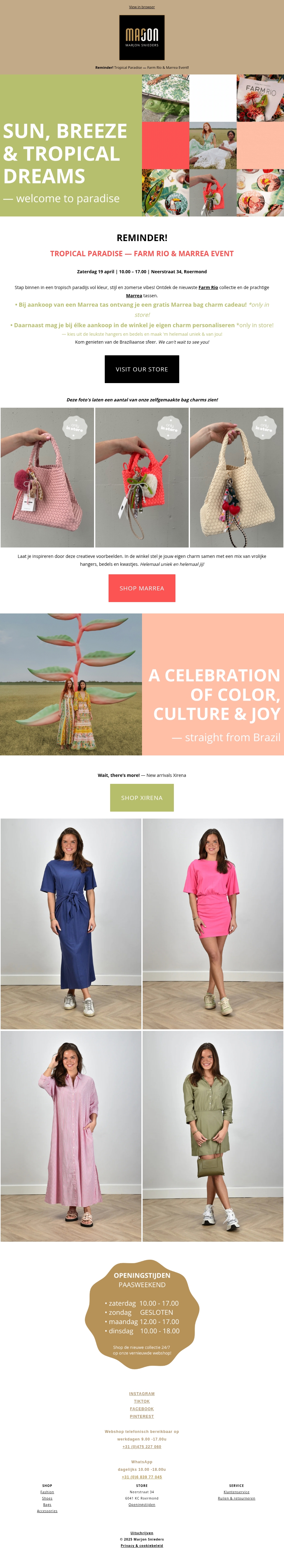 Reminder!ย ๐ด๐๐๐บ Tropical Paradise โ Farm Rio & Marrea Event!