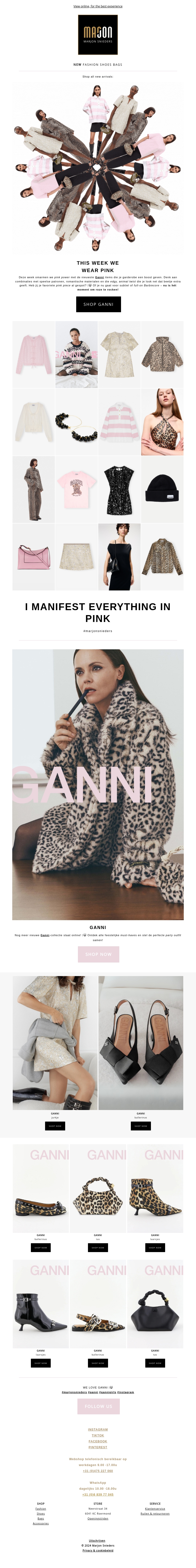 Deze week staat in het teken van roze bij Magon. Van stijlvolle jassen tot trendy accessoires, ontdek hoe je deze kleur in je garderobe kunt betrekken. Shop de nieuwste items van Ganni en maak een statement met unieke modellen. Vergeet niet het veelzijdige aanbod van schoenen en tassen te bekijken. Perfect voor modieuze combinaties.