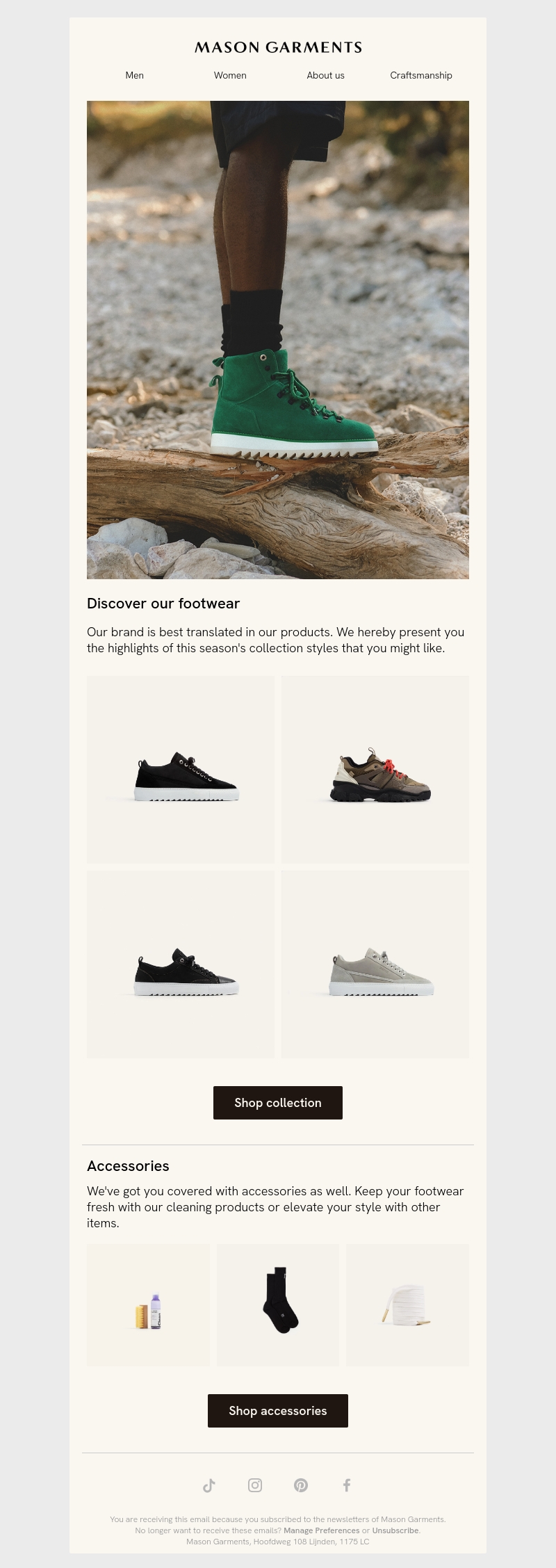Ontdek de nieuwste schoenen van Mason Garments, perfect voor elk seizoen. Van robuust laarzen tot stijlvolle sneakers, er is voor ieder wat wils. Mis ook niet onze accessoires om je schoenen fris en stijlvol te houden.