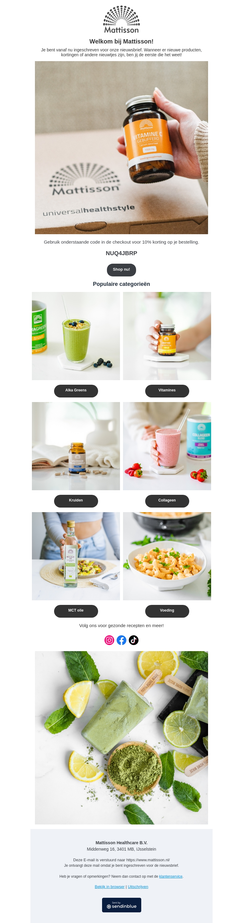 Welkom bij Mattisson! Je bent nu ingeschreven voor onze nieuwsbrief en ontvangt 10% korting op je eerste bestelling. Ontdek onze populaire categorieΓ«n zoals Alka Greens, vitamines, kruiden en meer. Gebruik de kortingscode NUQ4JBRP bij je aankoop.