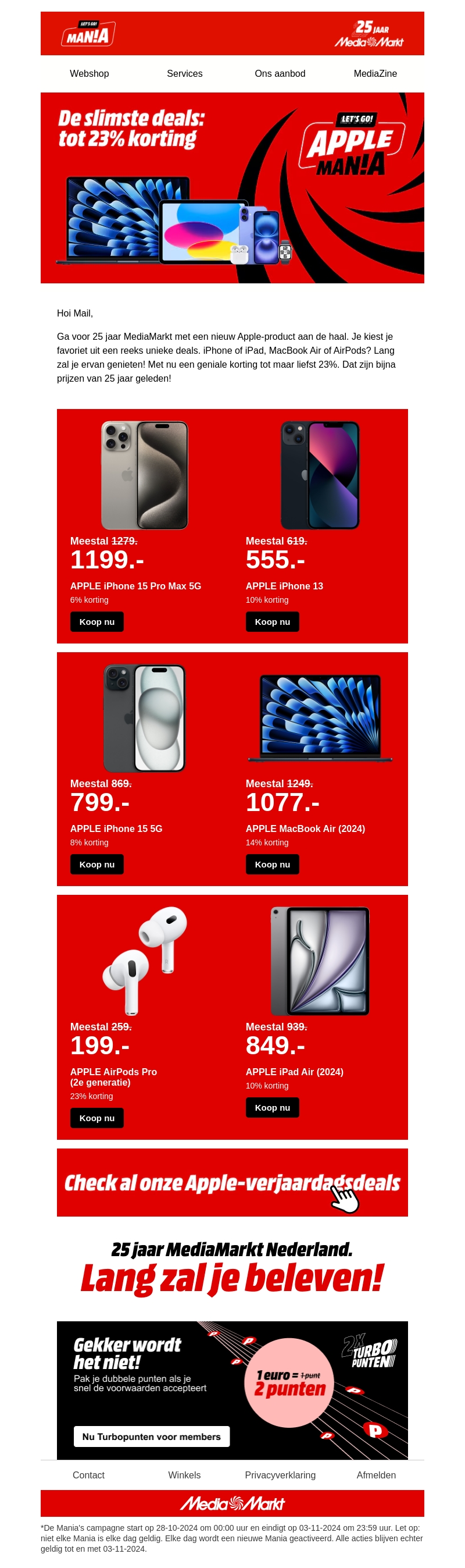 Vier onze 25ste verjaardag met geweldige kortingen tot wel 23% op Apple-producten bij MediaMarkt! Of je nu op zoek bent naar een iPhone, iPad of MacBook, wij hebben de beste deals voor jou. Ontdek fantastische kortingen op de nieuwste Apple gadgets en geniet van lagere prijzen dan ooit tevoren. Bezoek ons nu voor meer details!