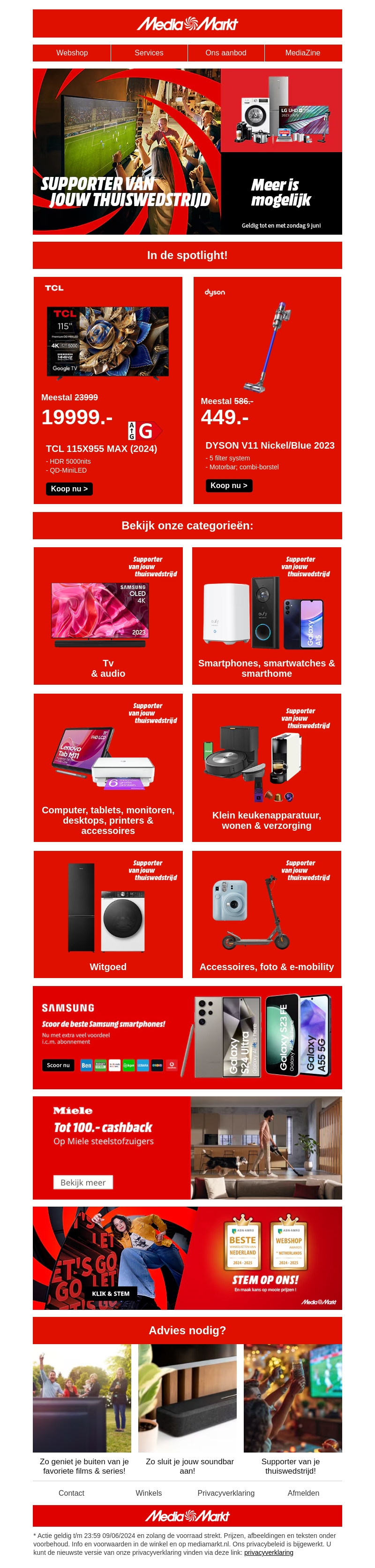 Ben je klaar voor het EK? MediaMarkt heeft de beste EK-deals voor jou verzameld. Geniet van geweldige kortingen op tv's, smartphones, huishoudelijke apparaten en meer. Mis deze kans niet om je favoriete producten voor minder te krijgen. Actie loopt tot en met zondag 9 juni. Scoor nu jouw deals en support jouw thuiswedstrijd!