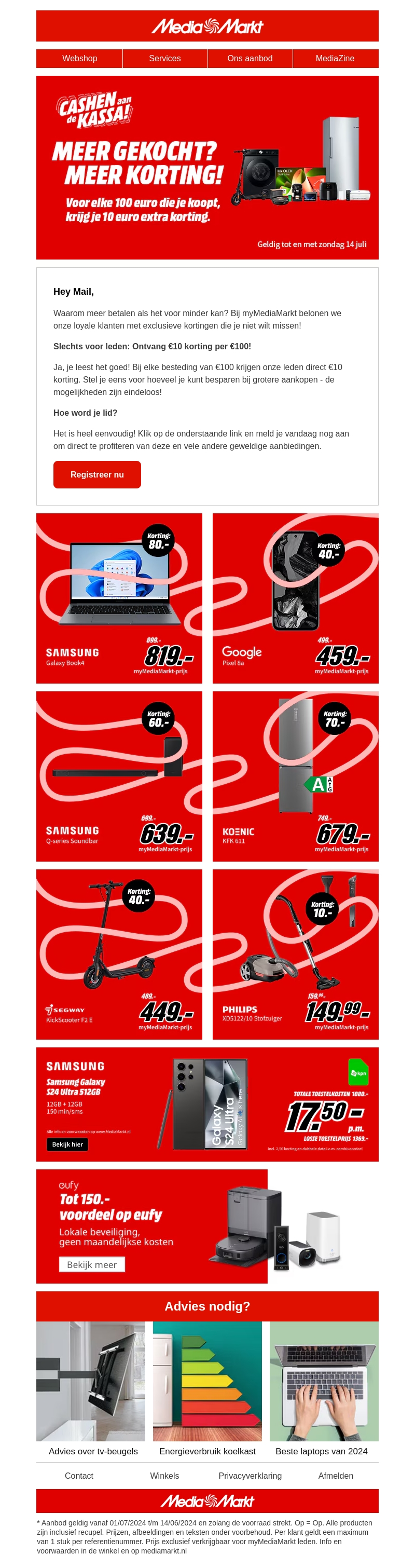 Wil je besparen op je favoriete producten? Word myMediaMarkt-member en ontvang exclusieve kortingen. Voor elke €100 die je uitgeeft, krijg je €10 korting! Deze aanbieding geldt tot en met zondag 14 juli, dus meld je snel aan!