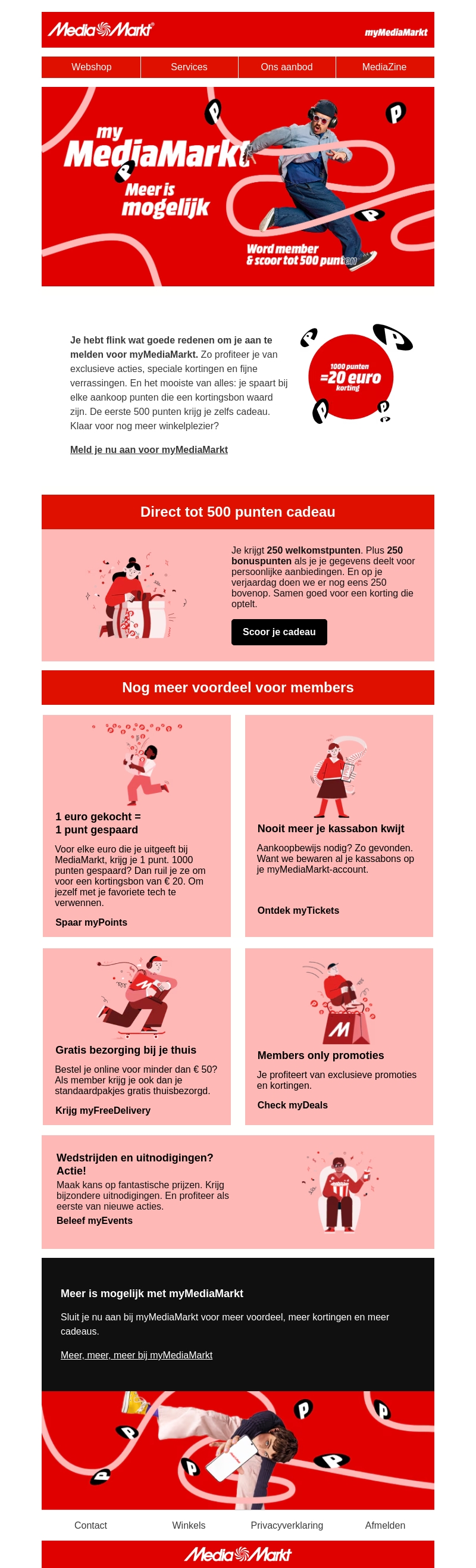 Sluit je aan bij myMediaMarkt voor exclusieve kortingen, speciale aanbiedingen, en gratis cadeaus. Al bij aanmelding ontvang je 500 punten cadeau, wat gelijkstaat aan €10 korting. Ontvang extra voordelen zoals gratis bezorging en leden-only promoties. Mis ook geen kans op uitnodigingen voor speciale evenementen. Meld je nu aan voor meer plezier bij MediaMarkt!