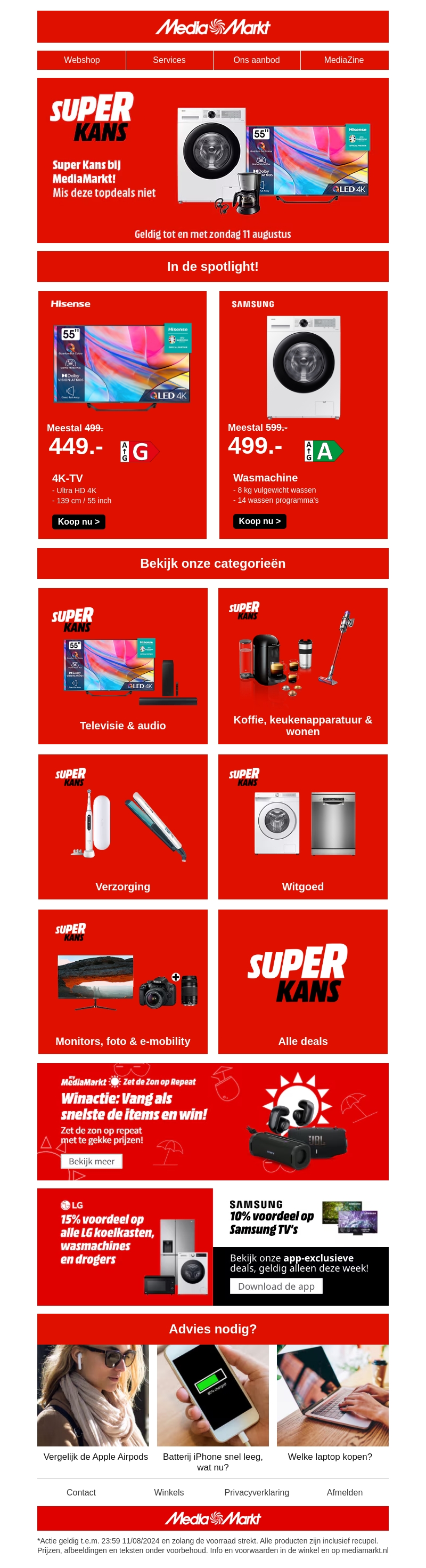 Profiteer van de Super Kans aanbiedingen bij MediaMarkt! Ontdek topdeals op televisies, wasmachines, en andere elektronica. Geldig tot en met zondag 11 augustus.