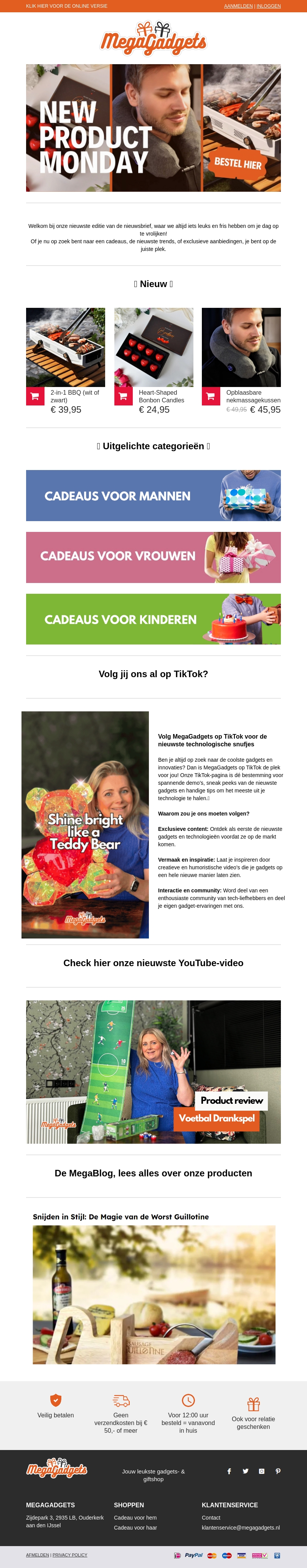Welkom bij onze nieuwste editie van de nieuwsbrief! Ontdek nieuwe gadgets die net binnen zijn en profiteer van exclusieve aanbiedingen. Bekijk cadeaus voor mannen, vrouwen en kinderen en volg ons op TikTok voor de laatste updates.