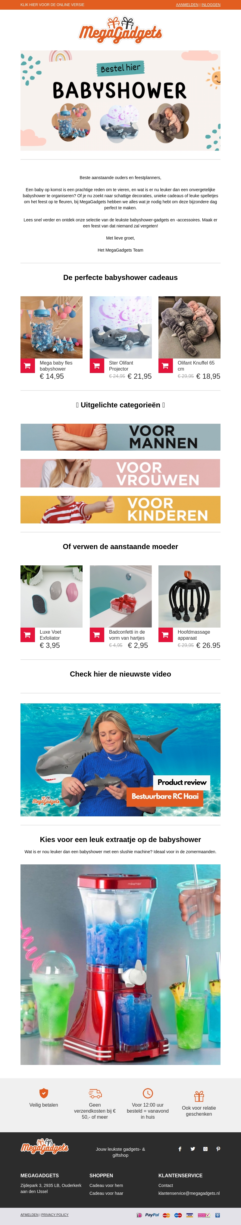 Beste aanstaande ouders en feestplanners, een baby op komst is een prachtige reden om te vieren. Bij MegaGadgets vind je tal van unieke en onvergetelijke cadeaus voor de babyshower. Ontdek onze selectie en maak er een onvergetelijke dag van!