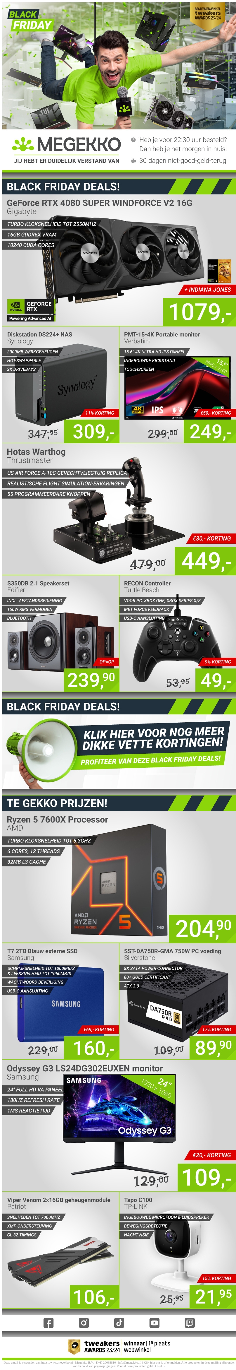 Megekko presenteert de grootste Black Friday deals voor tech-liefhebbers. Scoor hoge kortingen op producten zoals de GeForce RTX 4080, Synology NAS-systemen en meer. Mis deze kans niet om te profiteren van exclusieve aanbiedingen en bespaar flink op premium technologie. Alleen geldig tijdens Black Friday!