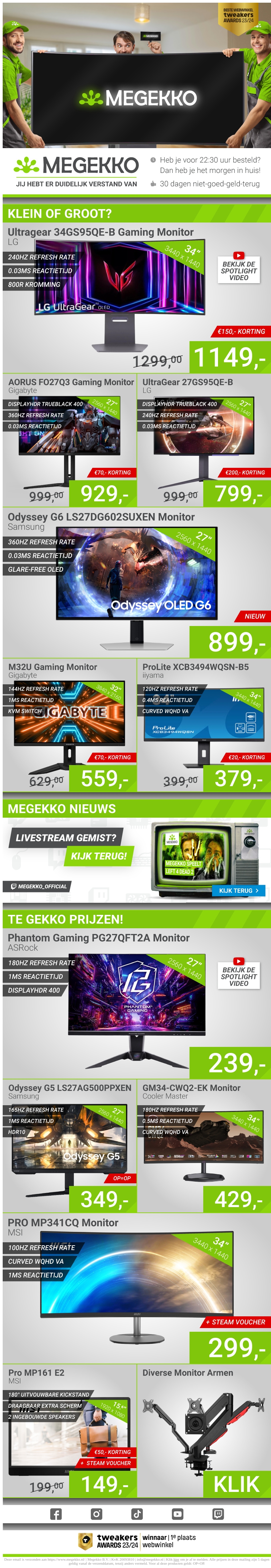 Verken de nieuwste monitor aanbiedingen van Megekko, variërend van compacte tot grote schermen. Profiteer van speciale kortingen op topmerken zoals LG, Samsung, en Gigabyte. Bestel vandaag nog en geniet van snelle levering.