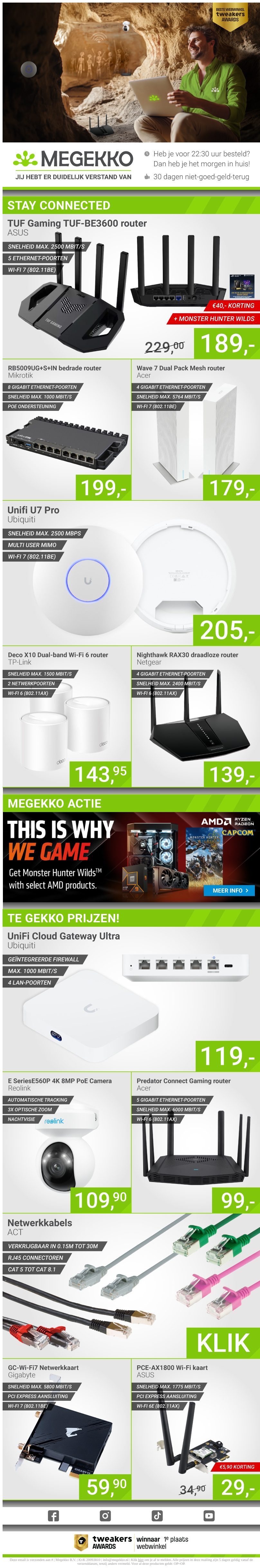 Blijf verbonden met geweldige aanbiedingen bij Megekko. Ontdek onze selectie van routers, netwerkkaarten en meer met aantrekkelijke kortingen. Mis de kans niet om uw netwerkprestaties te verbeteren. Bezoek nu Megekko voor een scherpe deal en geniet van uw technologie.