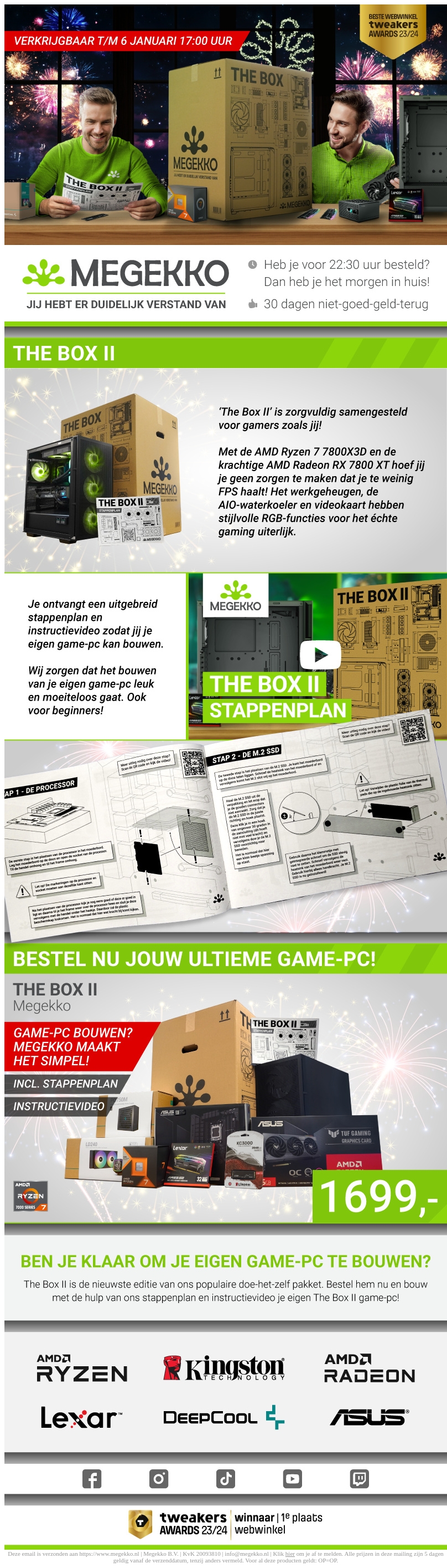The Box II biedt een compleet doe-het-zelf pakket voor gamers. Met krachtige onderdelen zoals de AMD Ryzen 7 7800X3D en de Radeon RX 7800 XT, ben je verzekerd van uitstekende prestaties. Inclusief een stappenplan en instructievideo voor een moeiteloze bouwervaring. Ideaal voor zowel beginners als gevorderden!