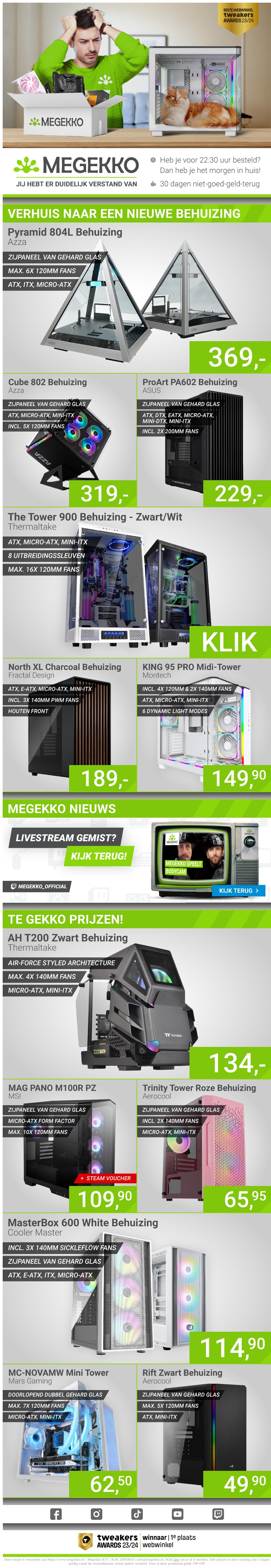Bij Megekko vind je een breed assortiment aan behuizingen voor je PC. Of je nu op zoek bent naar een compacte mini-ITX behuizing of een ruime ATX-toren, we hebben het allemaal. Bestel vandaag nog en profiteer van onze snelle levering en niet-goed-geld-terug-garantie.