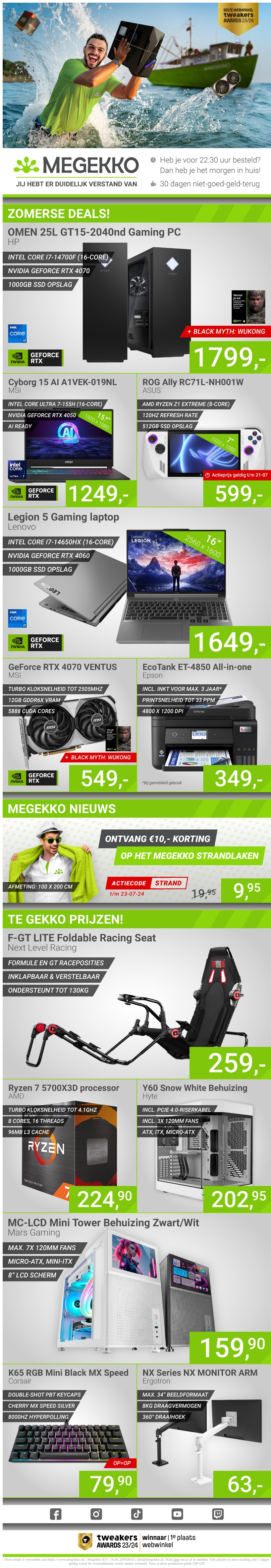 Duik in de Zomerse Deals bij Megekko! Van krachtige gaming PC's tot handige all-in-one printers en opbergoplossingen. Mis ook de exclusieve korting op het Megekko strandlaken. Bekijk de aanbiedingen voordat ze verlopen!