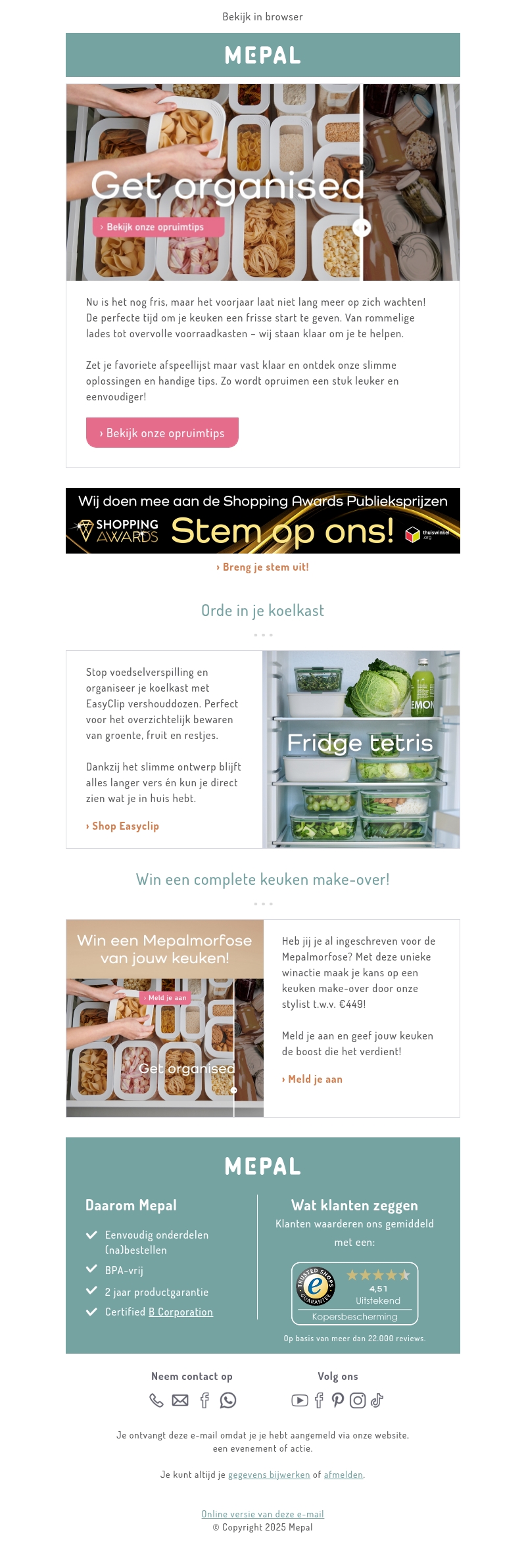 Ontdek slimme opruimtips voor een frisse keuken voor de voorjaarsschoonmaak. Mepal helpt je om rommelige lades en voorraadkasten te organiseren. Doe mee aan de winactie voor een complete keuken make-over door een stylist ter waarde van €449!