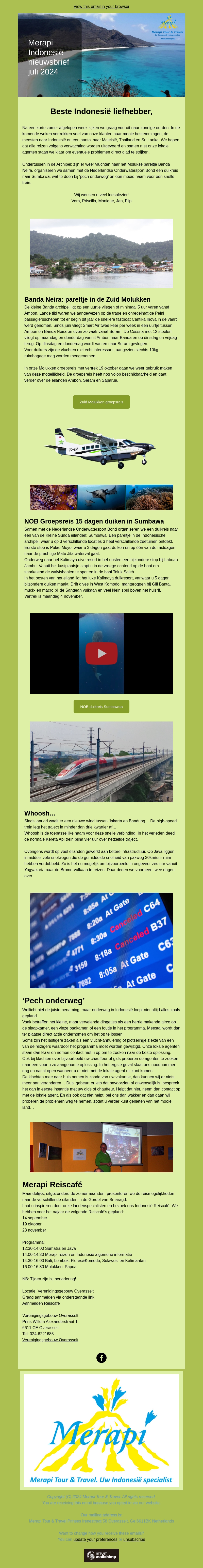 Beste Indonesië liefhebber, ontdek de nieuwste hotspots en avonturen in Indonesië deze zomer. Lees meer over unieke reizen naar Banda Neira en Sumbawa, inclusief spannende duikexpedities. Blijf ook op de hoogte van nieuwe infrastructuurontwikkelingen in het land. Mis het Merapi Reiscafé niet voor meer reisdetails!