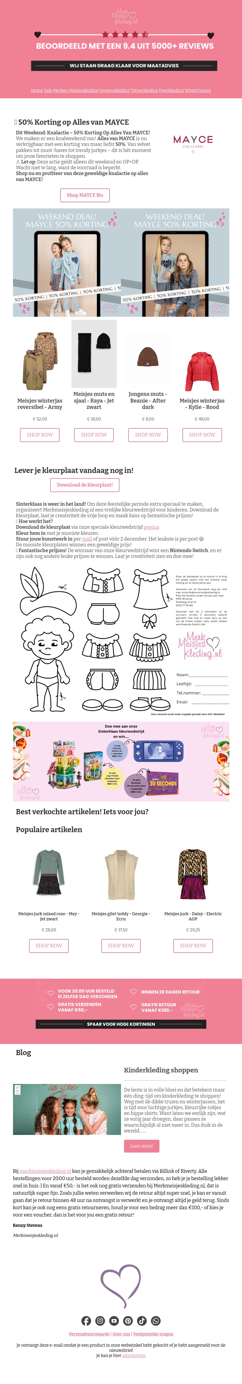 Mis deze weekenddeal niet! Bij MAYCE krijg je nu maar liefst 50% korting op alles. Ontdek trendy kleding voor meisjes en haal je favoriete items in huis tegen een halve prijs. Deze aanbieding geldt zolang de voorraad strekt. Ga snel naar de website en shop nu je nieuwe garderobe.