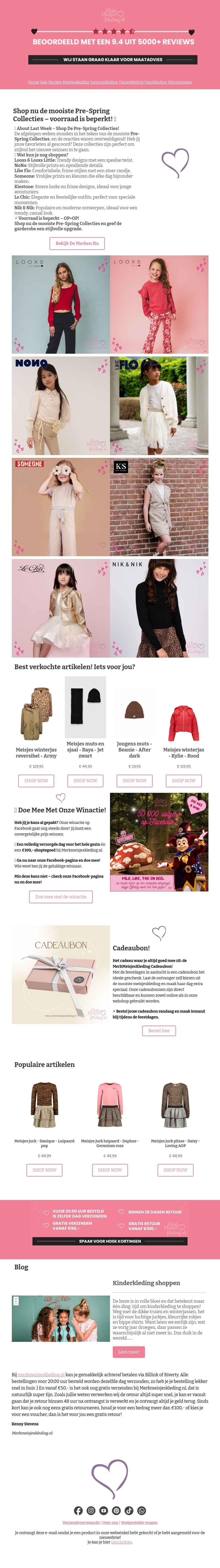 Verken de charmante Pre-Spring Collecties die nog online beschikbaar zijn. Ontdek stijlvolle looks voor elk moment en shop jouw favorieten. Mis deze unieke kans niet en voeg verfrissing toe aan je garderobe met exclusieve aanbiedingen.