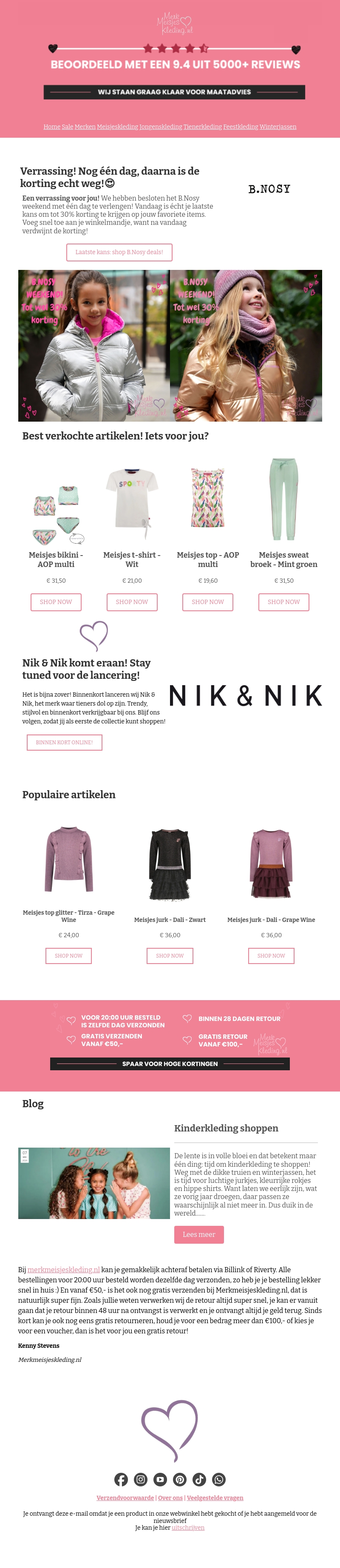 π Verrassing! Nog 1 extra dag B.Nosy korting!