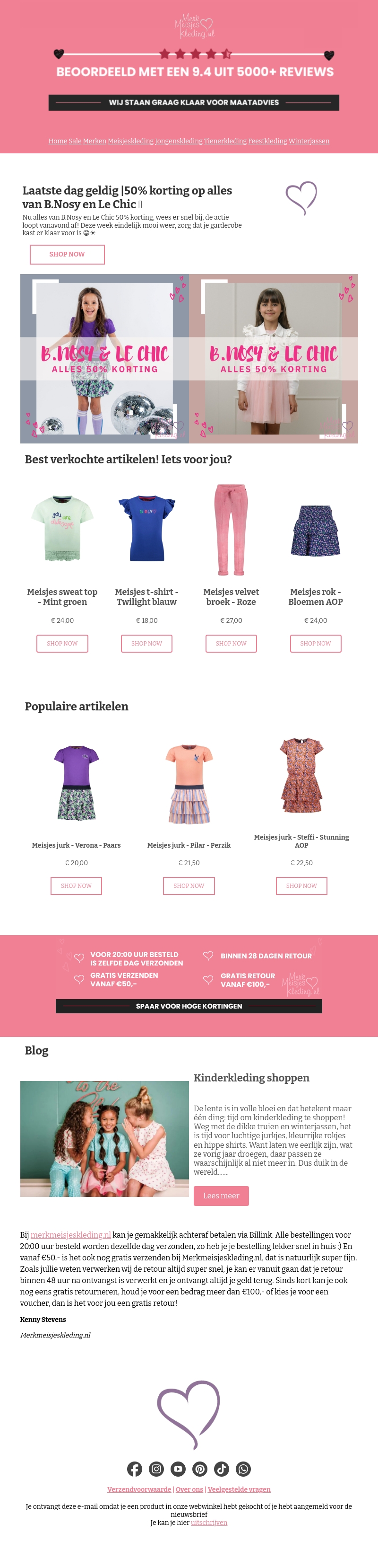 Alleen vandaag nog geldig | 50% korting op alles van B.Nosy & Le Chic π€©