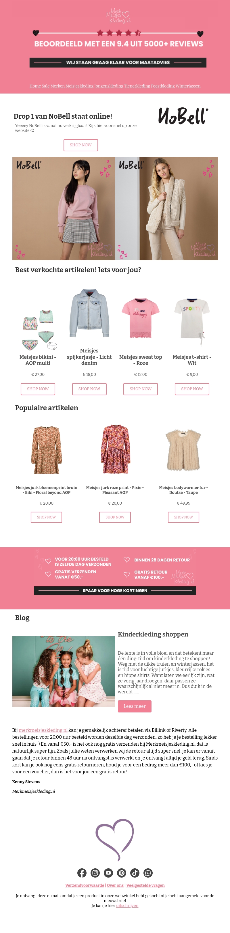 Yeeey NoBell Drop 1 is nu verkrijgbaar! Ontdek nu de nieuwste meisjeskleding collectie van NoBell. Van meisjes bikini's tot trendy spijkerjasjes, je vindt het allemaal in onze shop. Bezoek onze website en shop jouw favoriete artikelen!