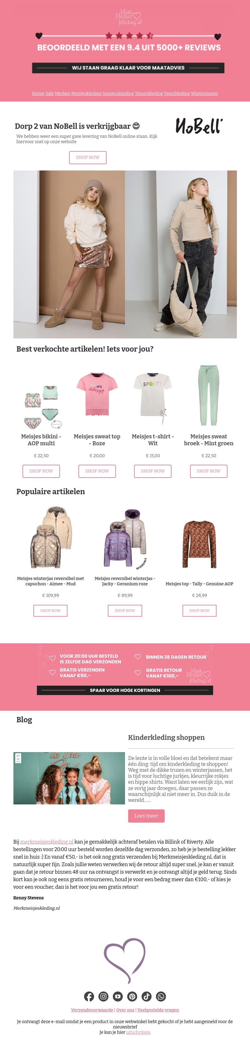 Drop 2 van NoBell is nu beschikbaar bij MeisjesKleding.nl. Ontdek de nieuwste trends en populaire artikelen die speciaal voor jou geselecteerd zijn. Mis de kans niet om unieke stijlen te scoren. Bestel voor 20:00 uur en ontvang je bestelling nog dezelfde dag!