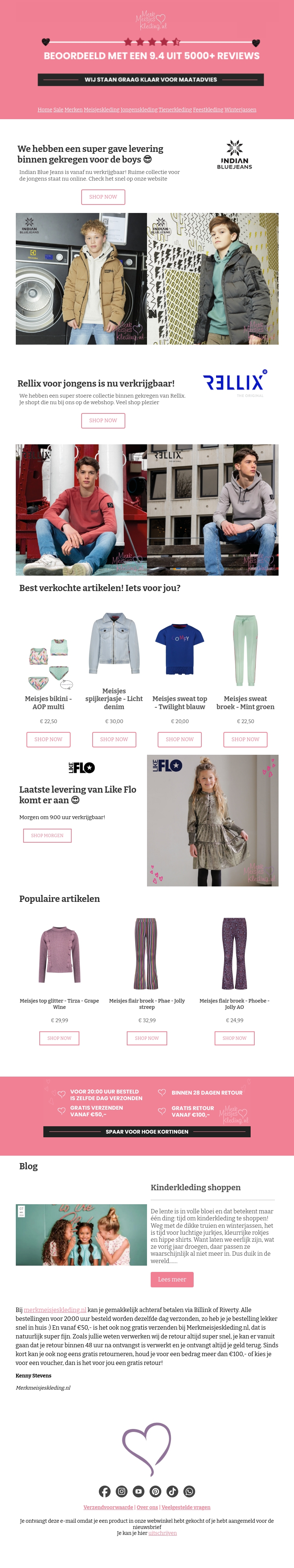 Indian Blue Jeans heeft een nieuwe super gave levering voor jongens! Ontdek de Rellix collectie, nu verkrijgbaar. Shop de bestverkochte artikelen en blijf op de hoogte van de nieuwste trends. Mis ook de laatste levering van Like Flo niet! Vergelijk en shop eenvoudig op onze website.