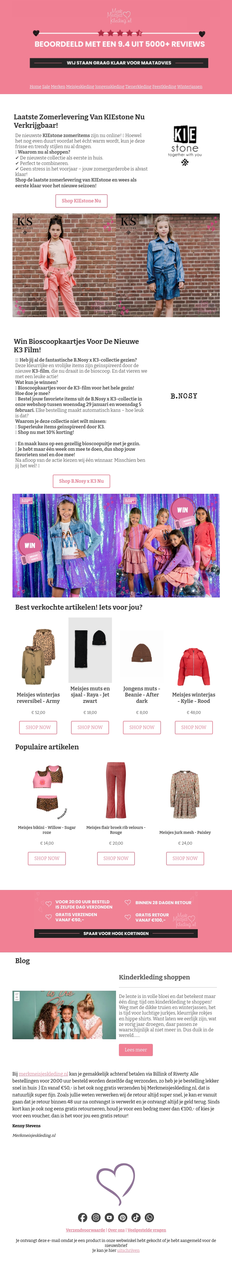 De nieuwe KIEstone zomerkleren zijn er eindelijk! Bereid je voor op de warme dagen met deze unieke items. Profiteer van exclusieve kortingen op de nieuwste collectie. Mis de kans niet om je garderobe te vernieuwen. Shop de laatste items direct online. Wees er snel bij, want op=op!