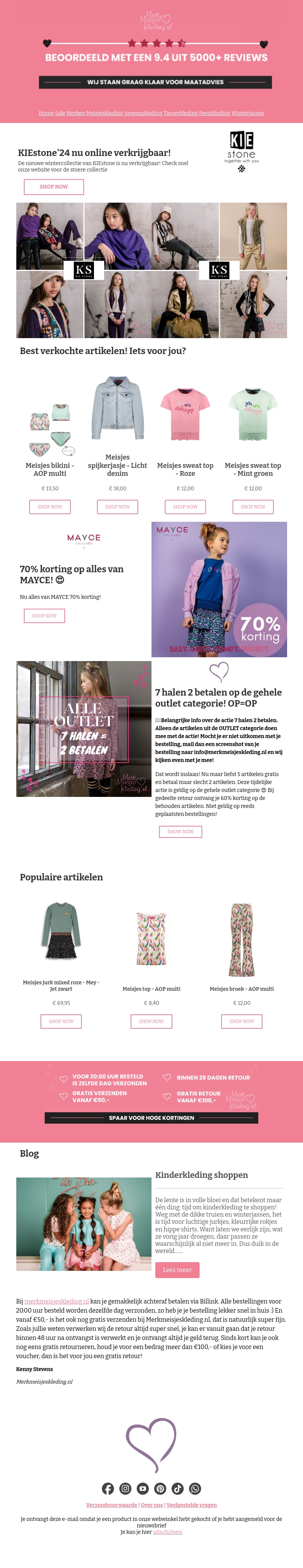 De nieuwe wintercollectie van KIEstone is nu verkrijgbaar op onze website! Ontdek de nieuwste mode voor meisjes en profiteer van geweldige kortingen, inclusief 70% korting op Mayce. Bekijk ook onze populaire artikelen en lees inspirerende blogs over kinderkleding shoppen. Mis het niet!