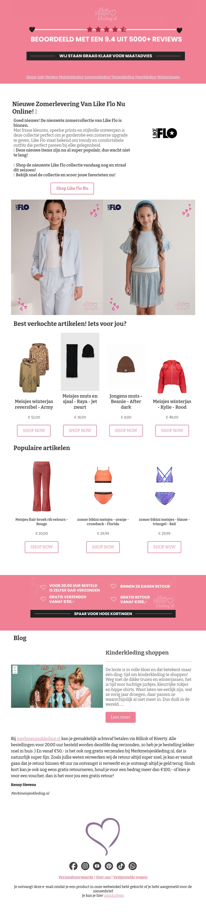 De nieuwste zomercollectie van Like Flo is nu beschikbaar online. Met frisse kleuren en stijlvolle ontwerpen is deze collectie perfect voor de zomergarderobe van jouw kind. Laat je inspireren door de populaire artikelen en shop vandaag nog in onze aantrekkelijke webshop!