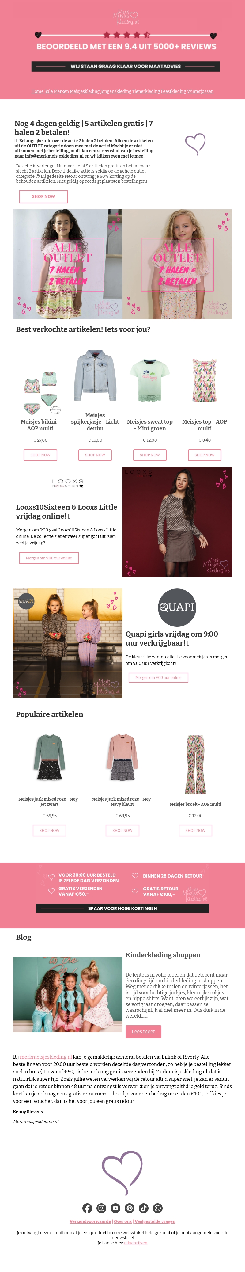 Profiteer nu van geweldige kortingen! Bij aankoop van 7 artikelen krijg je er 5 gratis. Onze populairste items, zoals jurken en broeken, zijn hier voor jou geselecteerd. Mis het niet, deze actie is slechts 4 dagen geldig!