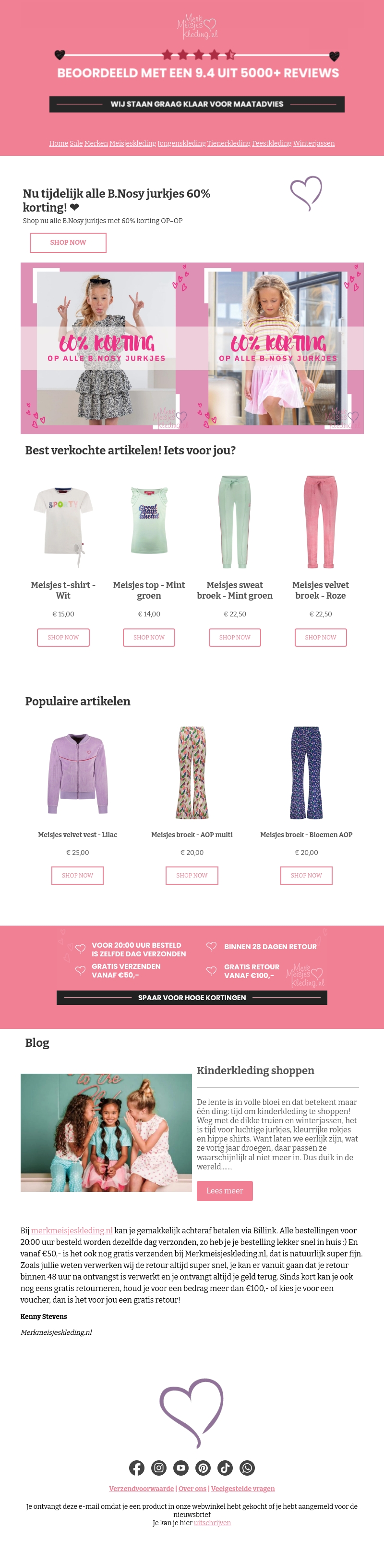 Profiteer nu van 60% korting op alle B.Nosy jurkjes bij Merkmeisjeskleding.nl! Ontdek de best verkochte artikelen en populaire items voor meisjes. Bestel voor 20:00 uur en ontvang je bestelling dezelfde dag verzonden. Gratis verzending vanaf β¬50 en gratis retour binnen 28 dagen.