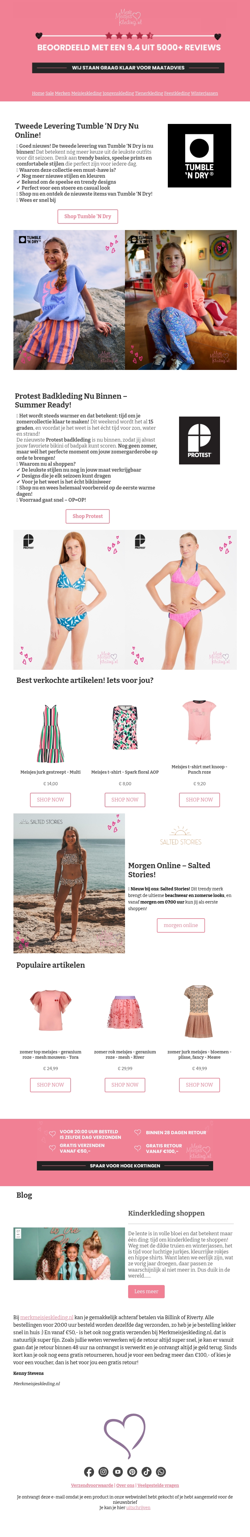 Verwelkom de zomer met de nieuwste badkleding van Protest en stijlvolle outfits van Tumble & Dry. Geniet van zomerse kleuren en designs die perfect passen bij zonnige dagen. Bezoek Salted Stories voor unieke beachwear aankondigingen. Mis deze kans niet om je garderobe een zomerse upgrade te geven!