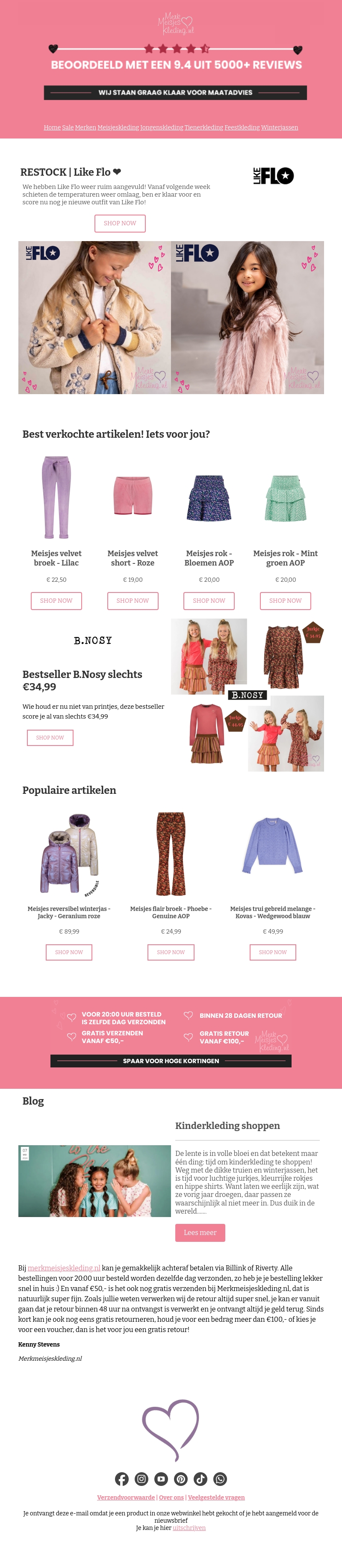 We hebben Like Flo weer ruim aangevuld! Vanaf volgende week schieten de temperaturen weer omlaag. Ben er klaar voor en scoor nu nog je nieuwe outfit van Like Flo! Vind de best verkochte artikelen, populaire items en nog veel meer op Merkkinderkleding.nl