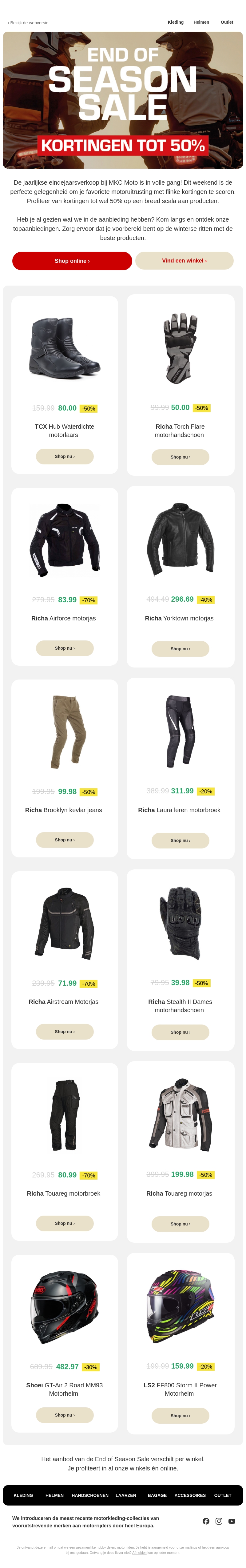 Mis de MKC Moto End of Season Sale niet! Tot wel 50% korting!