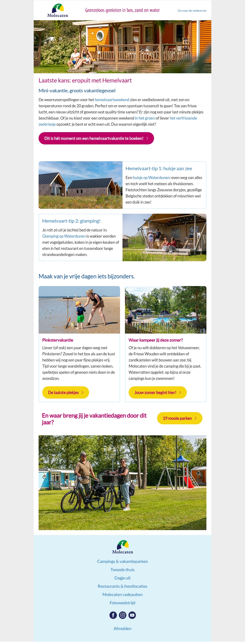 Last minute hemelvaartweekend • Welkom bij Molecaten