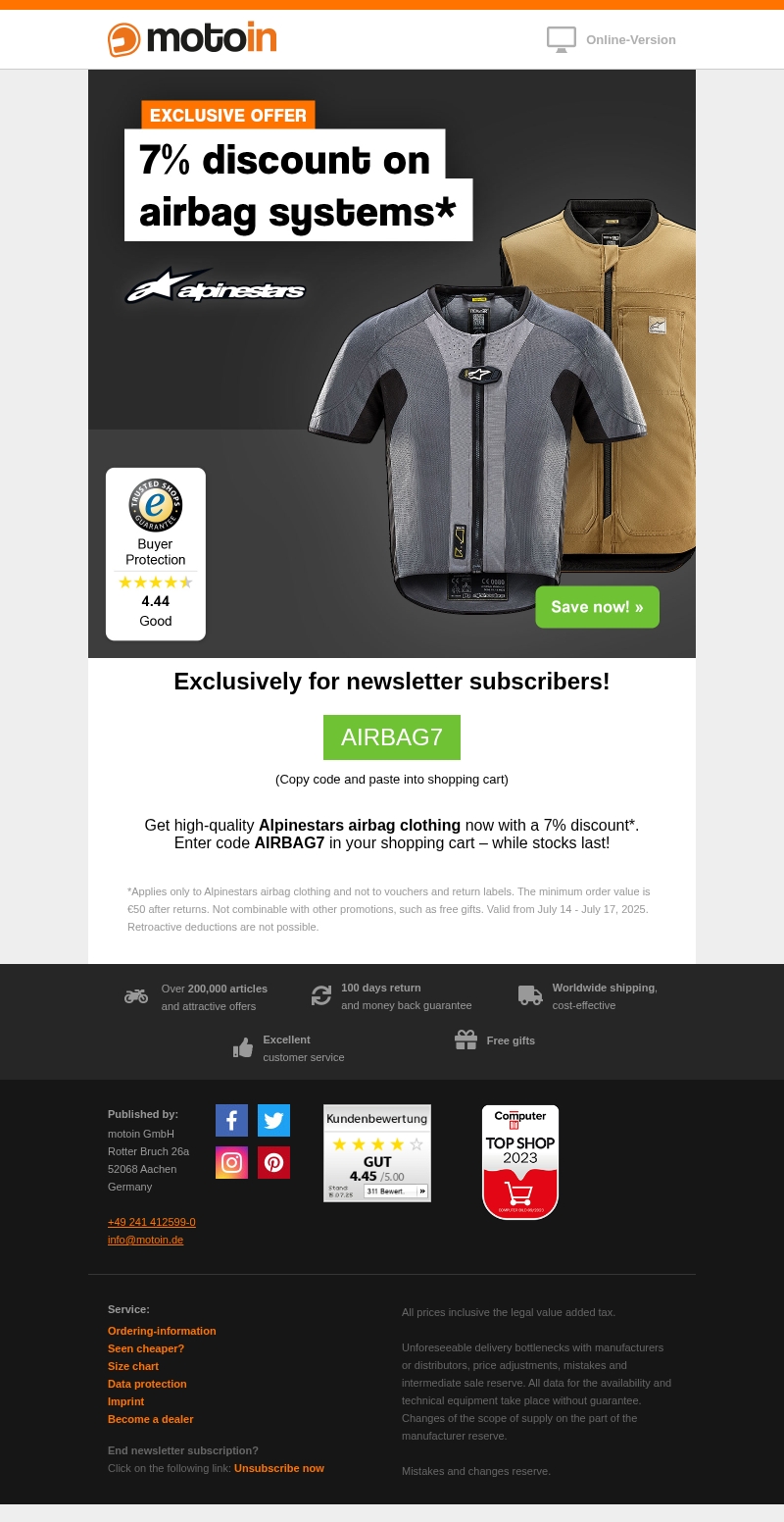 Alpinestars Airbags: 7% discount!