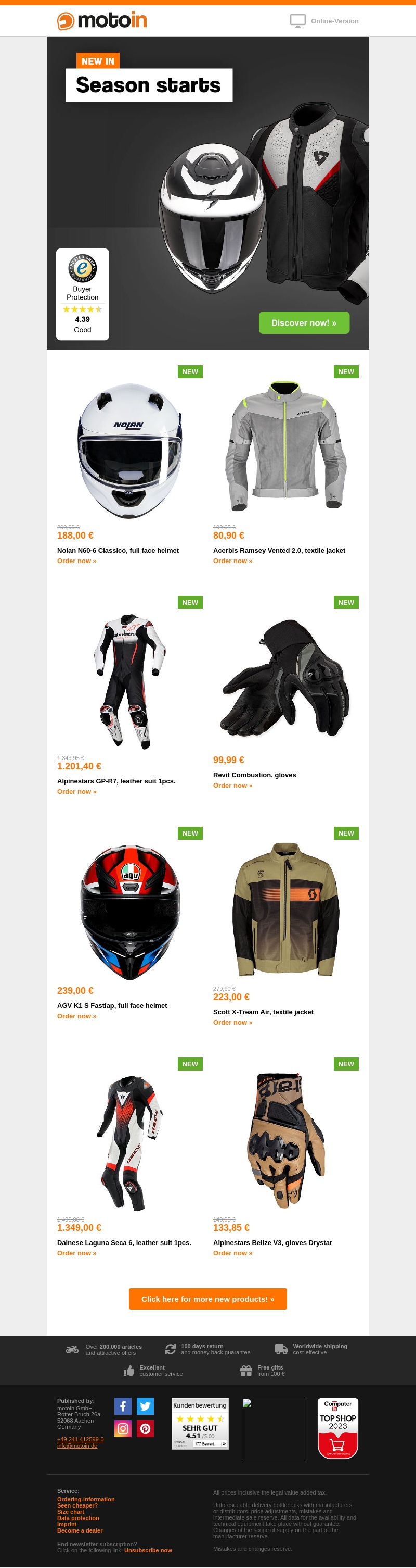 De nieuwe motorkledingcollectie 2025 is gearriveerd! Ontdek ons assortiment van helmen, jassen, en pakken van topmerken. Geniet van exclusieve aanbiedingen en bereid je voor op het nieuwe seizoen. Bezoek onze website voor meer informatie en mis de kans niet op deze geweldige deals.