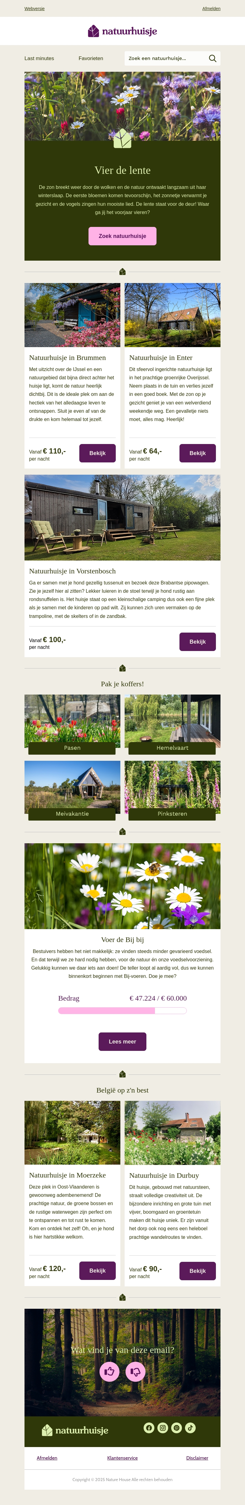 Vier de lente met geweldige natuurhuisjes aanbiedingen. Ontsnap naar serene locaties en geniet van de bloeiende natuur. Of je nu kiest voor een gezellig huisje in Brummen of een charmant verblijf in Enter, er is voor ieder wat wils. Verken de unieke accommodaties en plan je lente-uitje. Boek nu en beleef de lente op zijn best!