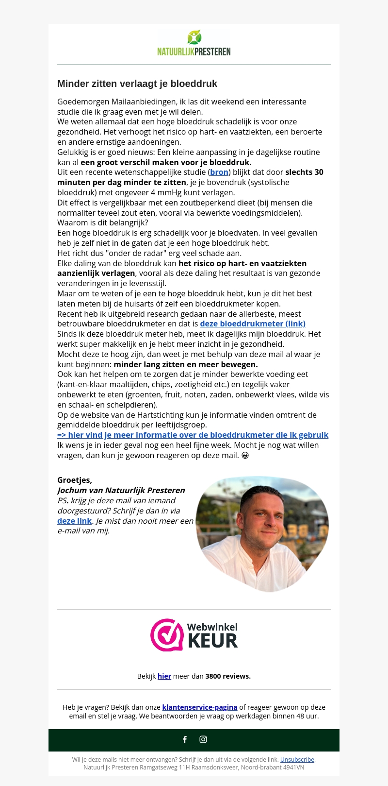 Ontdek een eenvoudige manier om je bloeddruk te verlagen met slechts 30 minuten per dag minder zitten. Lees over het risico van hoge bloeddruk en hoe je dit kunt verbeteren met kleine aanpassingen in je levensstijl.