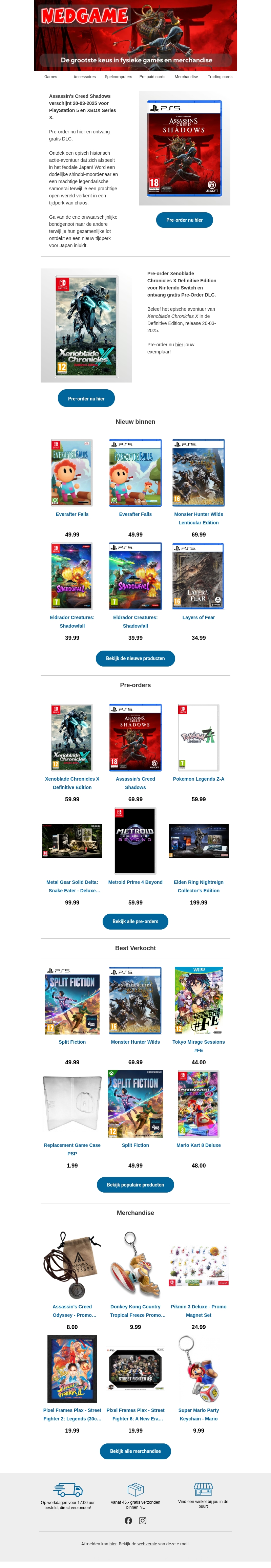 Assassin's Creed Shadows en Xenoblade Chronicles X Definitive Edition zijn beschikbaar voor pre-order. Bereid je voor op spannende avonturen en nieuwe DLC. Mis de kans niet om exclusieve content te bemachtigen. Bekijk ook de diverse merchandise die perfect bij je collectie past. Bezoek onze website voor meer informatie en aanbiedingen.