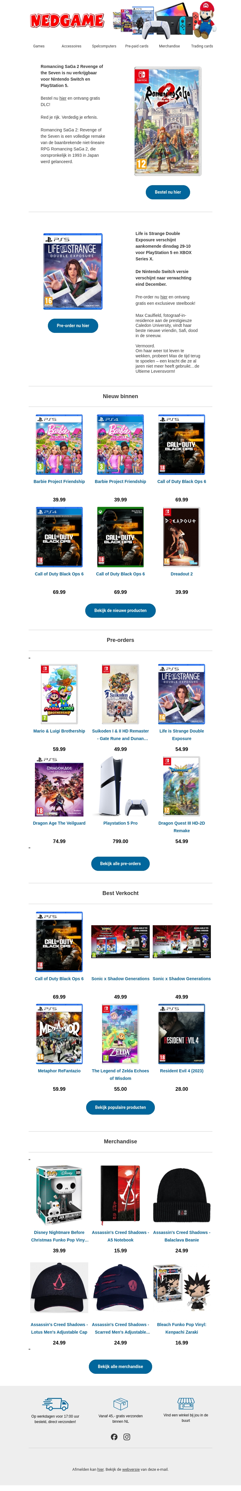Beleef epische avonturen met Romancing SaGa 2 en duik in de intrigerende wereld van Life is Strange Double Exposure. Deze nieuwsbrief toont exclusieve pre-orders en bekende games, inclusief steelbooks. Verken nieuwste releases en populaire producten. Mis de merchandise aanbiedingen niet.