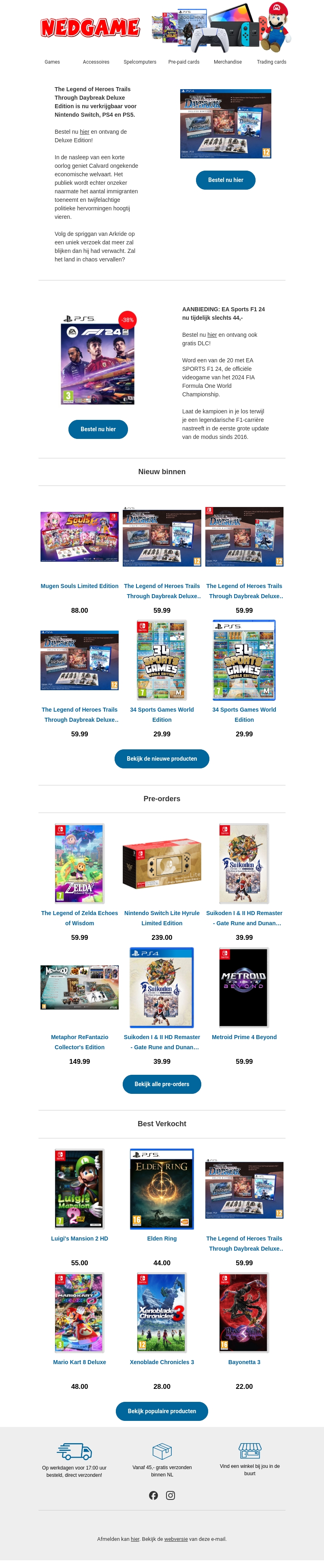 De nieuwste game releases zijn hier! The Legend of Heroes Trails Through Daybreak Deluxe Edition is nu beschikbaar voor Nintendo Switch, PS4 en PS5. Profiteer ook van de aanbieding op EA Sports F1 24, nu slechts 44,-. Bekijk de laatste pre-orders en best verkochte games.